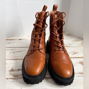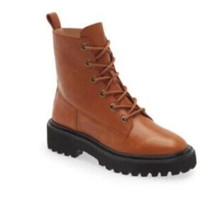 MADEWELL The Rayna lace-up boot leather combat English Saddle women’s sz 8.5 EUC