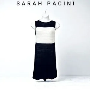 NWOT, Sarah Pacini, Sleeveless Knit Dress, One Size, Black & White