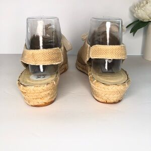 STUART WEITZMAN Canvas Gold Studded Slingback Tan Espadrille Wedge Luxury VTG