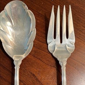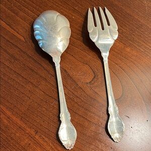 Vintage Deep Silver Serving Spoon and Fork 9”