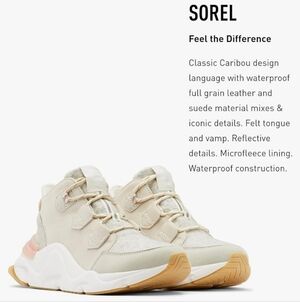 Sorel Women's Kinetic RNEGD Caribou Boot Waterproof Color Chalk Size 8.5
