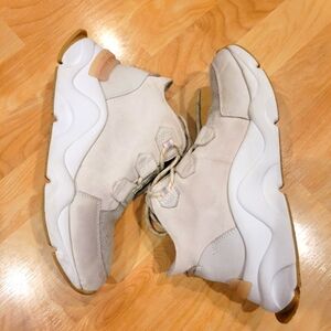 These boots are so great. Worn once. In great condition. Owner moved to a hot climate. These have a great, sturdy, waterproof sole. Great for winter months and rain. They have faux fur/micro fleece in the lining. Lace up front. Love the neutral colors which make these very versatile. Size 8.5