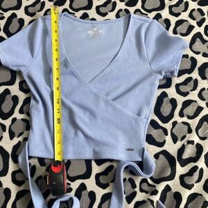 Ribbed Wrap style crop top from Hollister. In excellent used condition. Tie detail comes undone and can be tied any way you like. Very cute balletcore and Pilates style top. Has all the throwback vintage Y2K 2000s fashion vibes! Measurements are in the photos