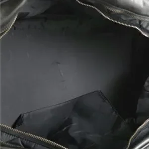 Stylish and durable, this black quilted leather men's bag is perfect for everyday use. Its sleek design and high-quality material make it a must-have accessory. This is pristine quality! The only CALLOUT is the inside zipper pocket is sticky and has some lint which can be cleaned.