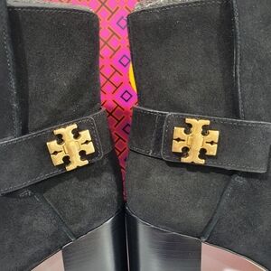TORY BURCH Womens Black Logo Kira Round Toe Block Heel Leather Booties 5 NWT