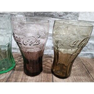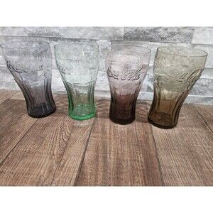 This set of 4 McDonald's Coca-Cola glasses features a variety of green, red, brown, and purple colors, perfect for collectors of Coca-Cola memorabilia. The glasses showcase the iconic Coca-Cola branding and are designed with a soda theme, making them a must-have for fans of the popular soda. These glasses are a unique addition to any collection and a great way to represent the Coca-Cola brand in a colorful and vibrant way.