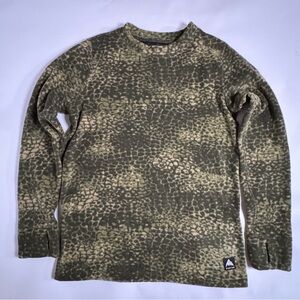 Burton fleece base layer set in a green camouflage/leopard print. Youth Small.