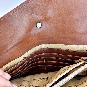 Vintage Leather Handbag Purse Clutch Wallet Fringe Brown Lisa Leonard