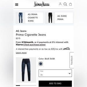 AG Jeans Women's Prima Mid-Rise Cigarette Fit Ankle Jeans Size 27R