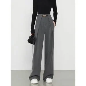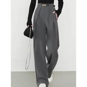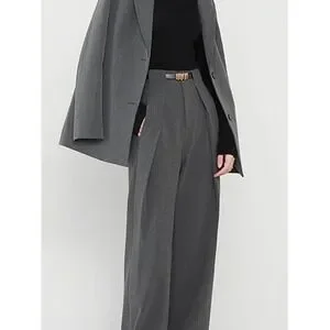 Sophisticated high-waist trousers. Features a sleek wide-leg cut. Ideal for modern style. Belt NOT included.