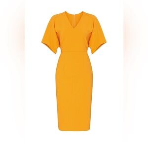 Chic and stylish midi dress by Donna Morgan. Features a vibrant golden hue. Ideal for any event.