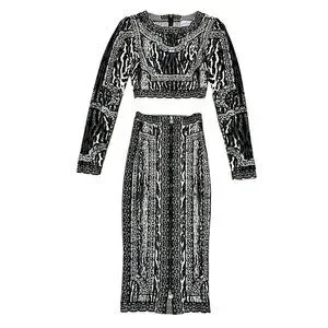 Herve Leger Two Piece Elegant Black and Gray Patterned Skirt Set