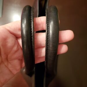This elegant black leather tote bag is perfect for any occasion. Its sleek design and spacious interior make it a must-have accessory. The embossed logo adds a touch of sophistication. This was purchased in Japan. It has the orginal dust bag. Good condition. It has been cleaned and conditioned. Interior needs further cleaning ( see photos). The interior has pen marks in it. I believe the interior is pig skin suede. A professional leather and suede cleaner might be able to remove the marks. Hirofu is a Japanese high end purse. This is possibly vintage but could not verify year it was made.