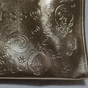 Elegant gold tote with embossed design. Perfect for stylish outings.
