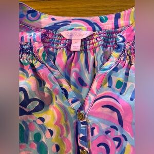 Lilly Pulitzer Medium Elsa Silk Top in the ‘Psychedelic Sunshine" GUC for age