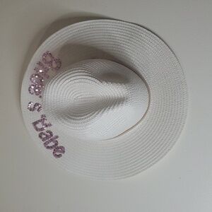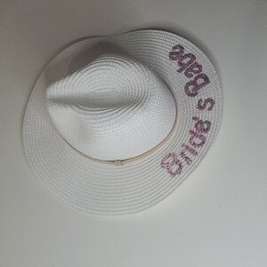 NWT Simply Southern Bride's Babe White Straw Hat Wedding Summer Beach Pink