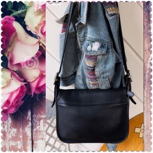 VINTAGE COACH BLACK LEATHER & KNICKEL PATRICIA’S LEGACY CROSSBODY SADDLE BAG