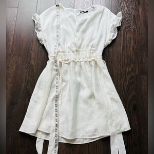 It is on the shorter side so I would recommend wearing some biker shorts if you don’t feel comfortable with the length, although it is so gorgeous on and looks so beautiful with heels