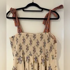 Charming cream dress with floral pattern.