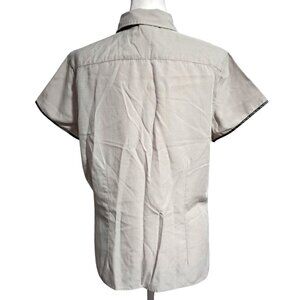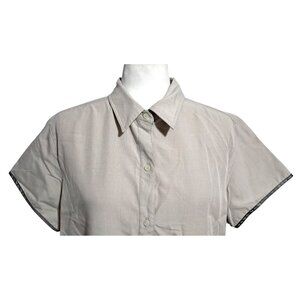 North Face Hiking Shirt Women's Size XL Button Down Short Sleeve Beige Plaid Side Pocket