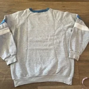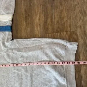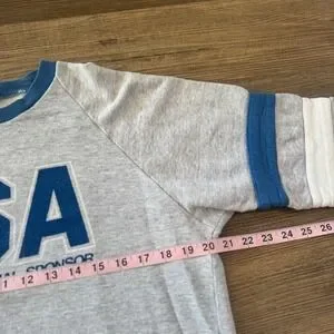 In great shape! A subtle, unnoticeable spot on the word "Official" (zoomed in on the photo). No holes. Lightweight sweatshirt.