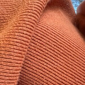 Chic asymmetrical dress in vibrant orange. Sleeveless design by Victor Alfaro. Perfect for modern elegance. Has a small amount of pilling, which is normal for a sweater dress.