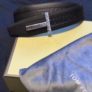 Sleek black belt by Tom Ford. Made from premium leather. Combines style and functionality. Gently used. 105 cm long