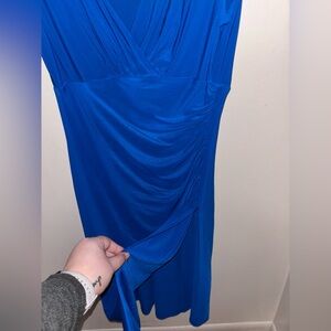 Women’s cocktail dress. Lauren by Ralph Lauren midi cocktail dress. Bright blue in color. Slit up side. Size 4. Like new, absolutely no flaws!