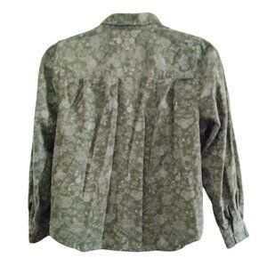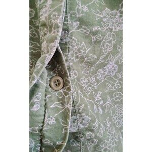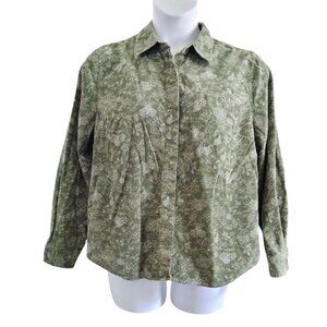 C.J. Banks Plus Size 1X Top Green Floral Corduroy Button-Up Long Sleeve Collared