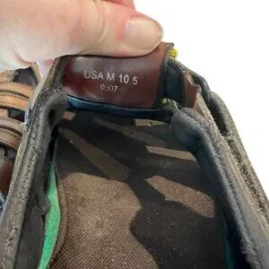 Overall shoes are in good condition. The back of the right shoe has a little bit of cracking in the leather but of doesn’t affect the function of the shoes. See photos.
