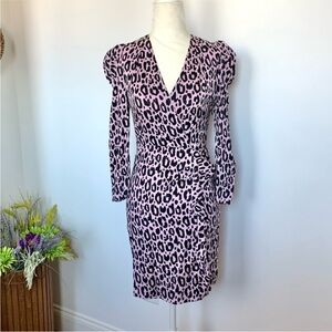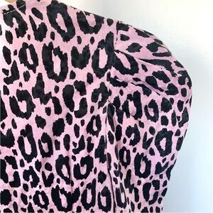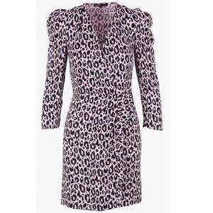 Stylish mini dress with bold animal print. Features a V-neck and three-quarter sleeves. Ideal for a trendy look.