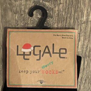 New Men's Legale Socks Christmas Theme Moose Santa Hat Black NWT