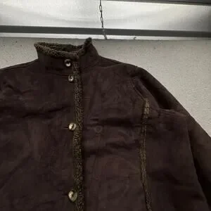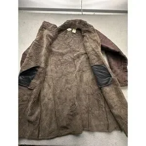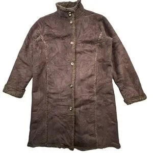 LL Bean BCT4 Faux Shearling Sherpa Long Coat Womens Large Brown Button