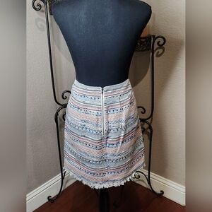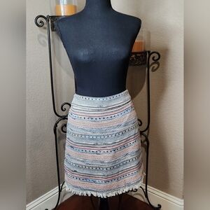Ann Taylor Loft Multicolored Striped Fringe Hem Skirt With Tweed Texture. Size 4