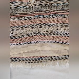 Style: The design includes frayed edges and fringe accents, giving it a bohemian or preppy