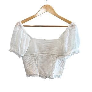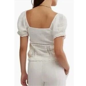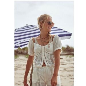 Free People Bali Alana Lace Button Down Crop Top Ivory