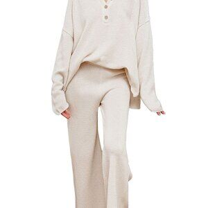 Brand new and in flawless condition — this cozy two-piece knit set offers an effortlessly stylish and relaxed look perfect for lounging at home, running errands, or enjoying daily activities. The oversized, comfortable fit is ideal for all-day wear across multiple seasons.