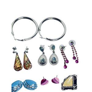 This collection of earrings with a mix of silver tones, intricate designs, and colorful accents. Ideal for vintage style enthusiasts.