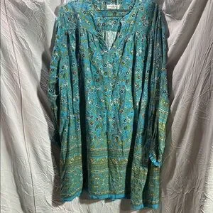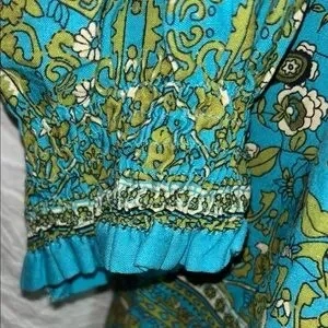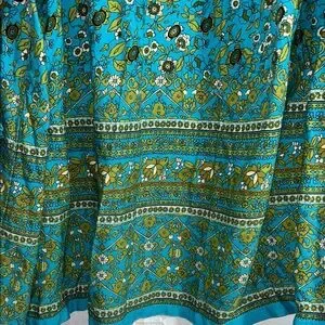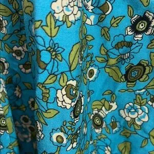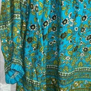Teal dress with grean floral patterns. Bohemian style with a loose fit.