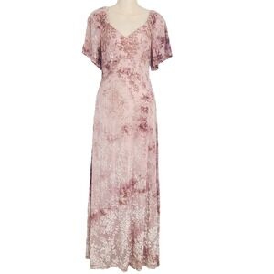 Baltic Born Maxi Dress S Dusty Rose Pink Velvet Floral V-Neck Romantic Gown