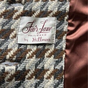 Vintage 1950s–early 1960s (Mid-Century) wool houndstooth coat featuring real fur collar and cuffs (likely fox). This is a beautifully tailored, union-made piece with a classic double-breasted silhouette and timeless proportions.