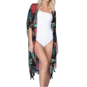 SUBTLE LUXURY | Pool to Party Hibiscus Garden Floral Kimono Wrap Beachy One Size
