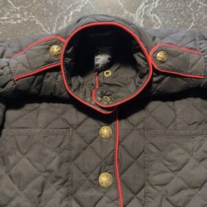 Polo Ralph Lauren Jacket Kids 10-12 Black Quilted Red Piping Gold Buttons