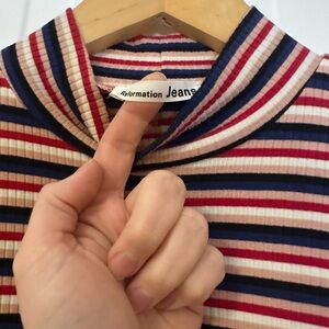 Trendy mini dress with pink and black stripes. Features a turtleneck and short sleeves. Perfect for casual outings.