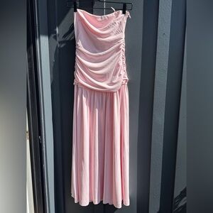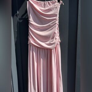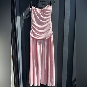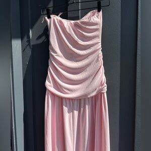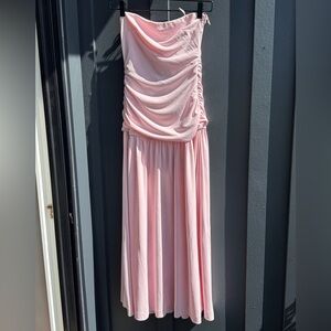 Stylish strapless dress in soft pink. Ideal for warm weather events.