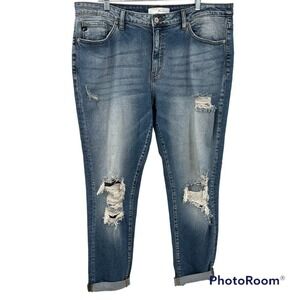 Kancan Women 31 Stretch Distressed Ripped Baggy Comfy High Rise Blue Denim Jeans