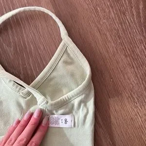 Alo Yoga set in melon green. Lightly worn. No stains or pulls. Top is size small, leggings are size xs