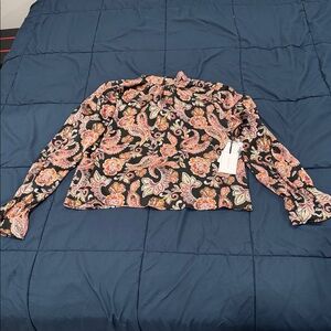 1.STATE Black Paisley Blouse | Floral Print | Long Sleeve | Size M | NWT
