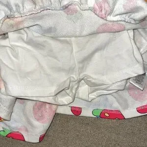 Adorable kids matching set featuring a playful cartoon print. The set includes a top and shorts in vibrant white and red colors, perfect for fun and comfort.