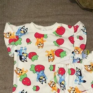 Kids Bluey Print Matching Set - White and Red